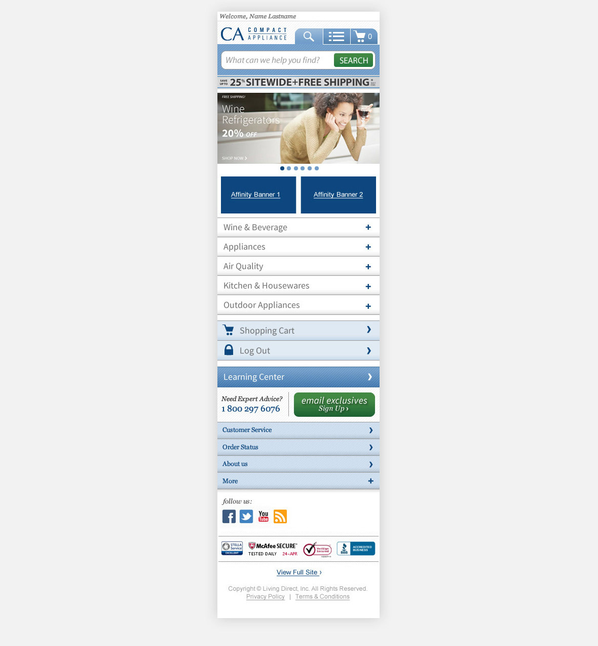 CompactAppliance.com Mobile Homepage