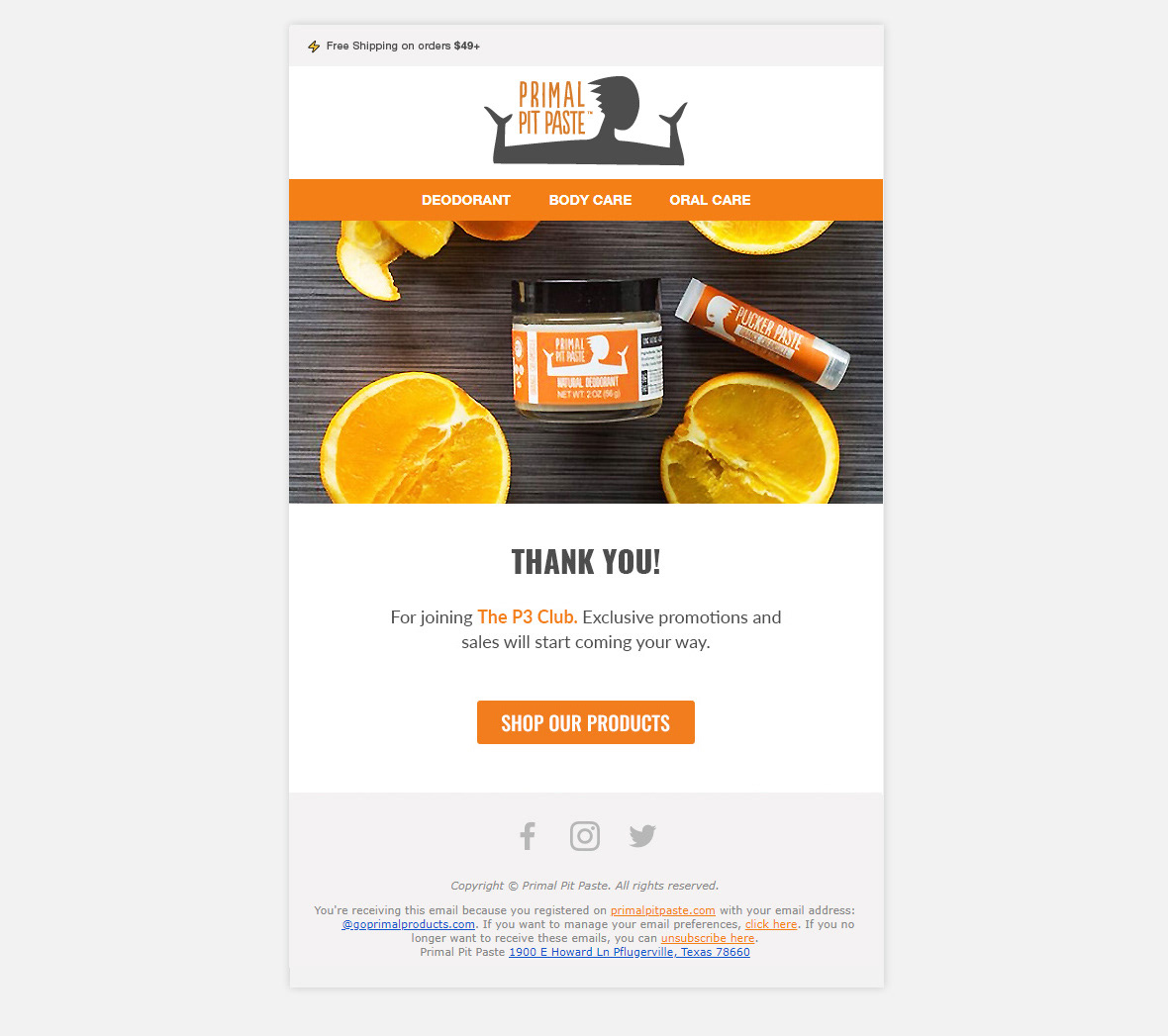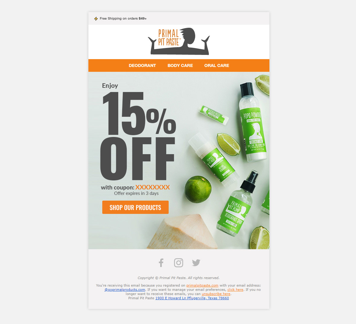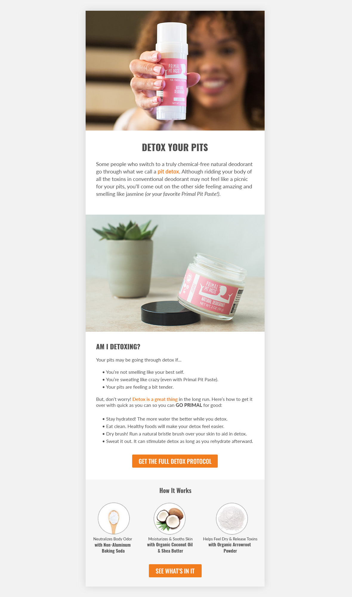 Email & social campaigns created for Primal Pit Paste, an all natural skin products based in Austin, TX. Defined new look and feel for company's marketing pieces.