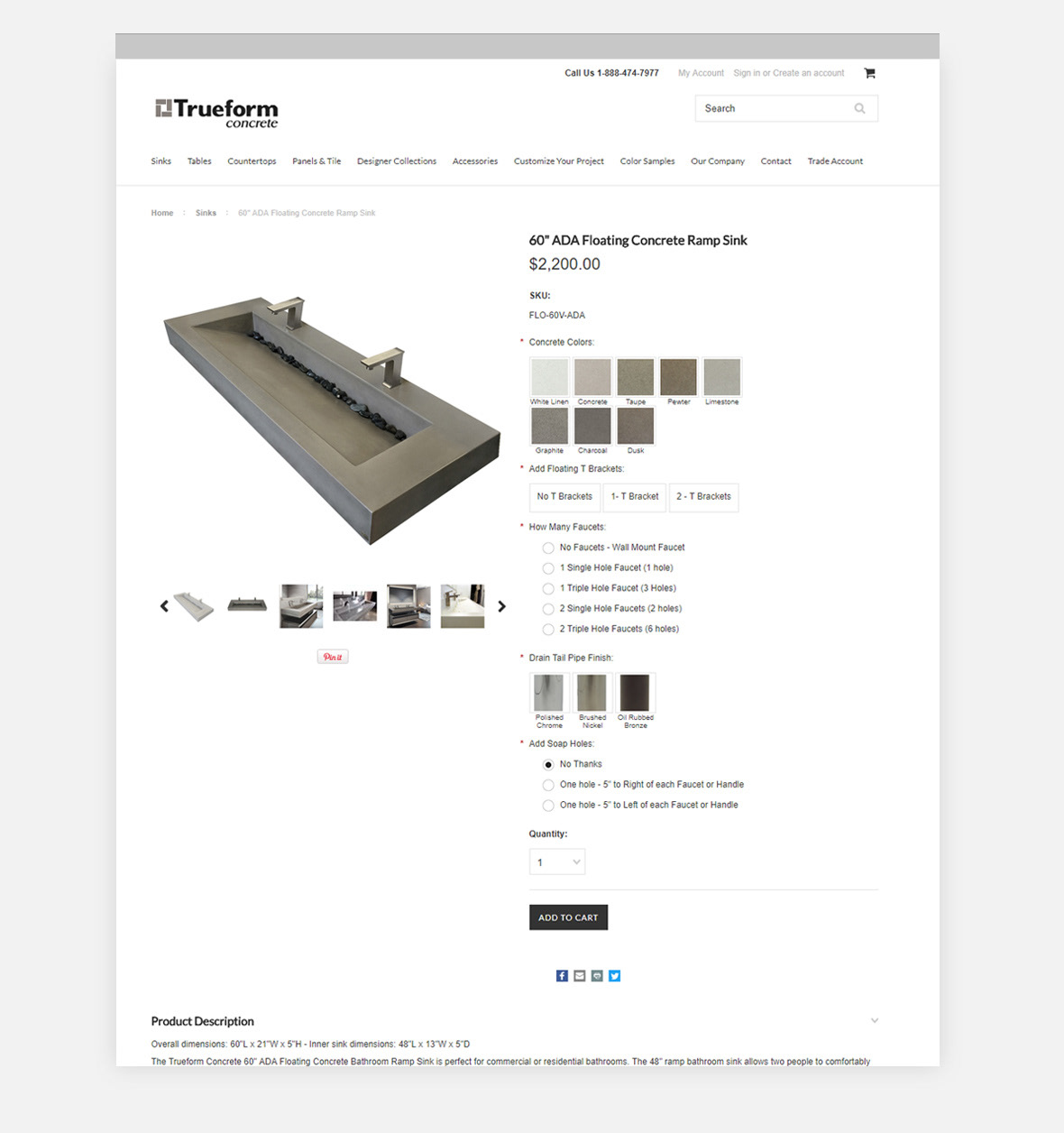 For Reference - Original product detail page: customization tool and shopping cart button, showing below page fold.